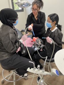 At Sierra Mountain Education, our Dental Assistant Program offers hands-on training in a real dental clinic setting. Through our partnership with Compassion Dental and Adopt A Vet, students participate in free community clinics where they learn alongside experienced dental professions – including dentists, hygienists, dental assistants, and office managers. This unique setting allows students to develop both clinical back-office skills and front desk administrative experience, preparing them for success in all areas of the dental practice.